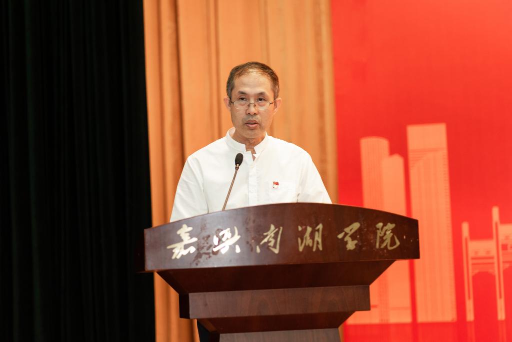 嘉兴市政协副主席、校党委书记盛付祥代表学校党委,向广大共产党员致以节日亲切的问候,对受到表彰的先进集体和优秀个人表示祝贺。盛付祥表示,先进集体和优秀个人的典型事迹、奋斗精神,都集中展现了基层党组织和广大党员围绕中心、服务大局、履职尽责、甘于奉献的精神风貌。他希望大家积极对标先进,履职尽责争优秀、立足岗位创一流,也希望受表彰的集体和个人,珍惜荣誉、再接再厉、再创佳绩。